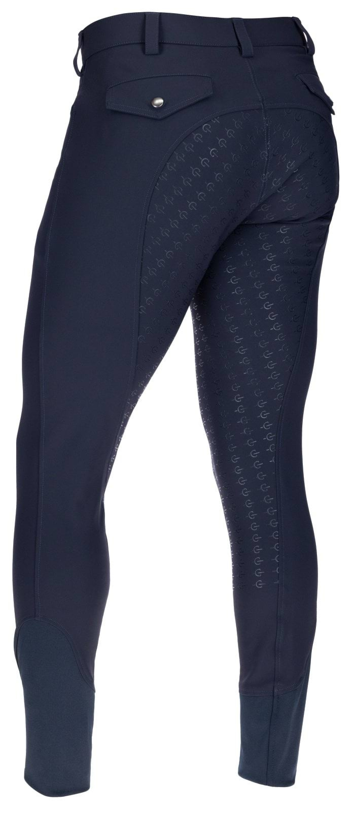 - Bryczesy męskie Covalliero Techno II, pełny lej silikonowy, w kolorze ciemnoniebieskim. Komfortowe, elastyczne, w rozmiarze 44 – idealne do jazdy konnej.