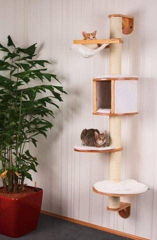 - Drapak Kerbl Dolomit, 168 cm, biały, montowany na ścianie. Wyposażony w sizalowe słupki i pluszowe poduszki. Zapewnia kotu miejsce do drapania, zabawy i odpoczynku, jednocześnie oszczędzając przestrzeń w domu.