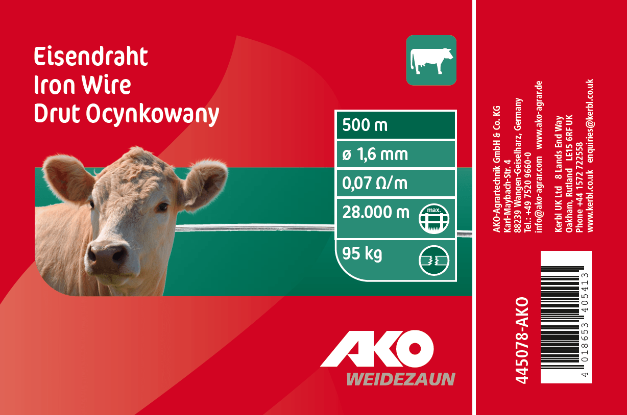 - Drut ocynkowany AKO do ogrodzeń elektrycznych, 1,6 mm, 500 m, na małej szpuli. Odporny na korozję, trwały i łatwy w rozwijaniu. Idealny do budowy ogrodzeń dla zwierząt.