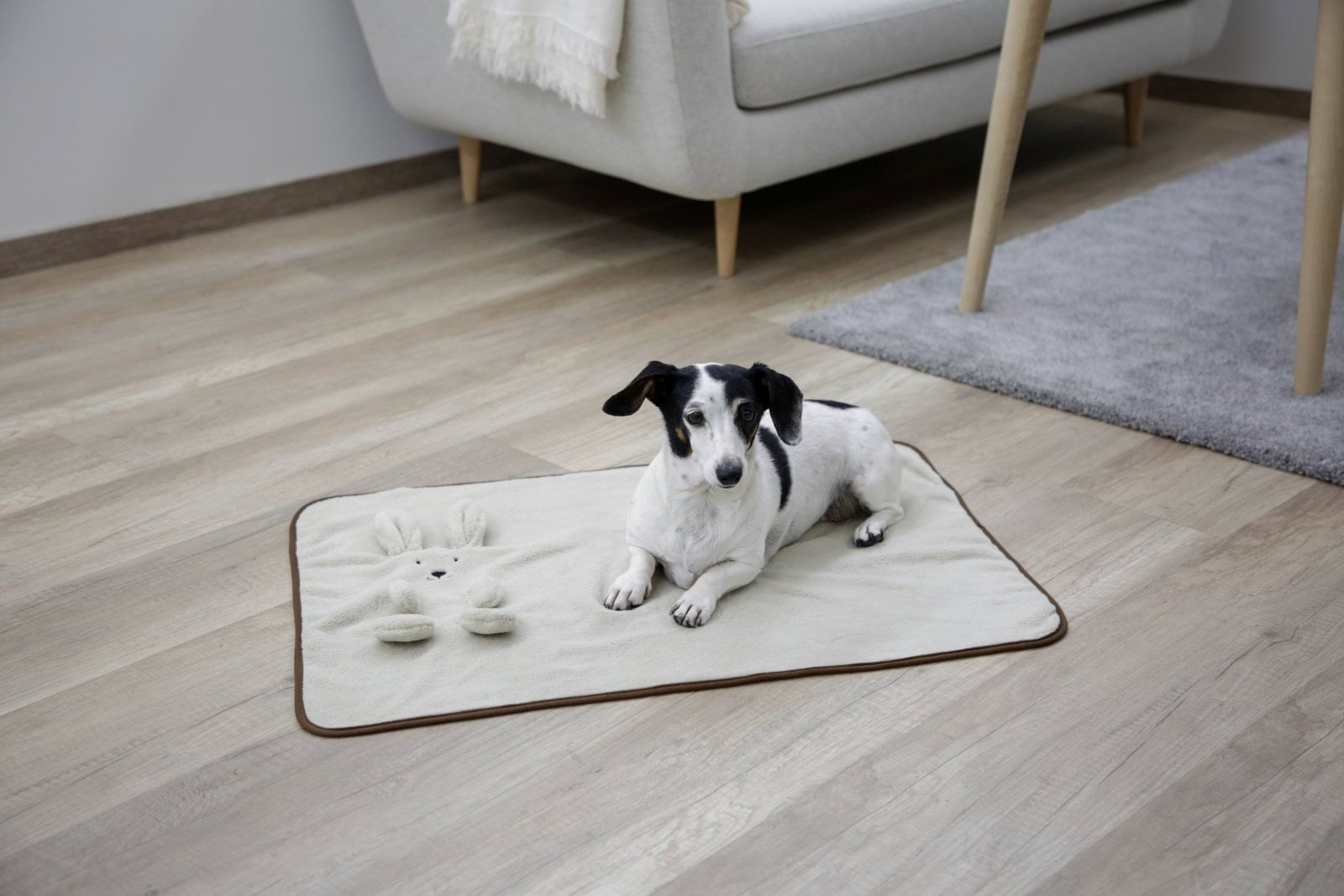 - Miękki koc z flauszu, idealny dla szczeniąt i małych psów. Chroni meble przed zabrudzeniami i sierścią. Można prać w temperaturze 30 °C. Składa się w formę króliczka, co czyni go atrakcyjnym akcesorium.