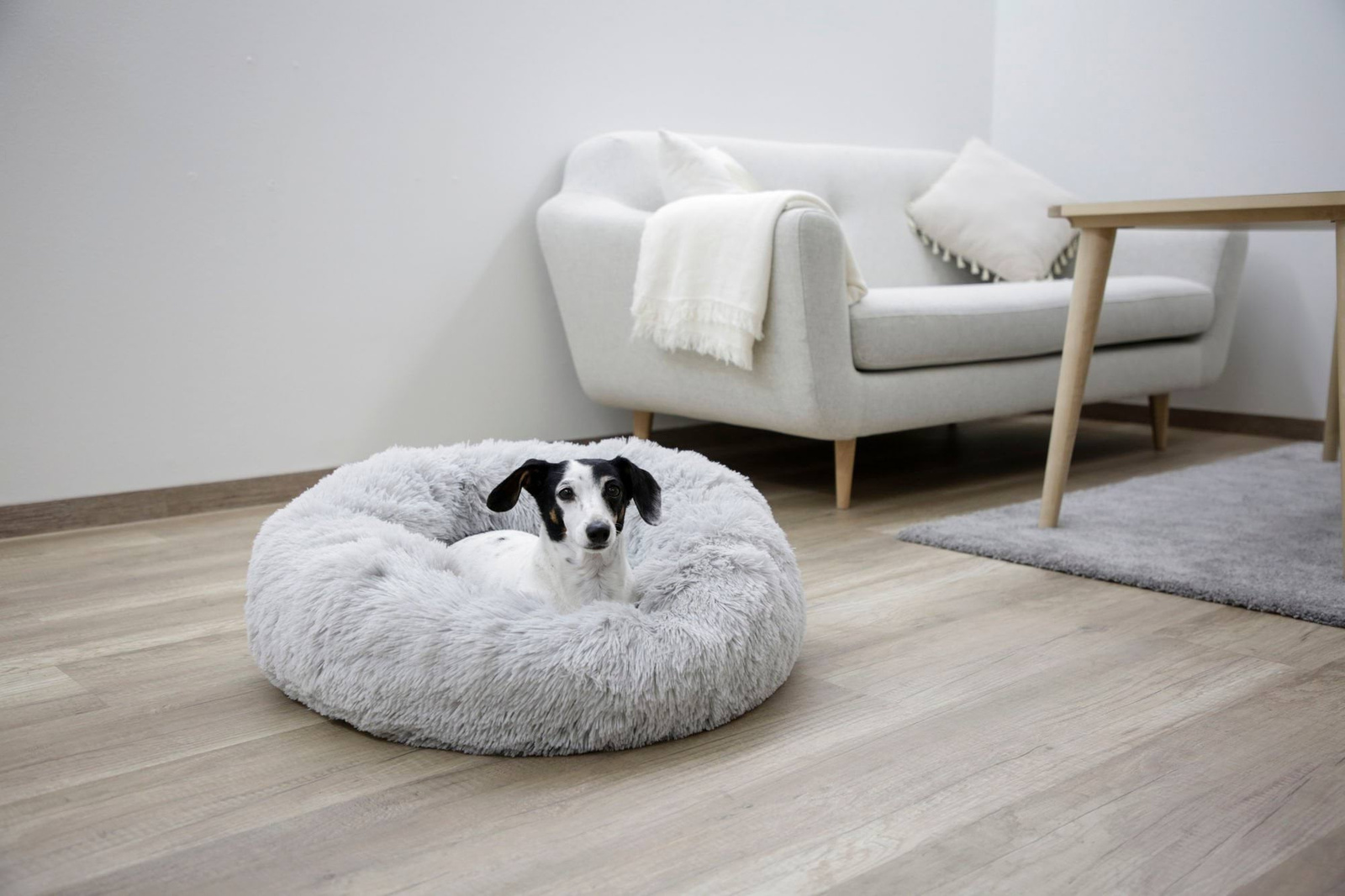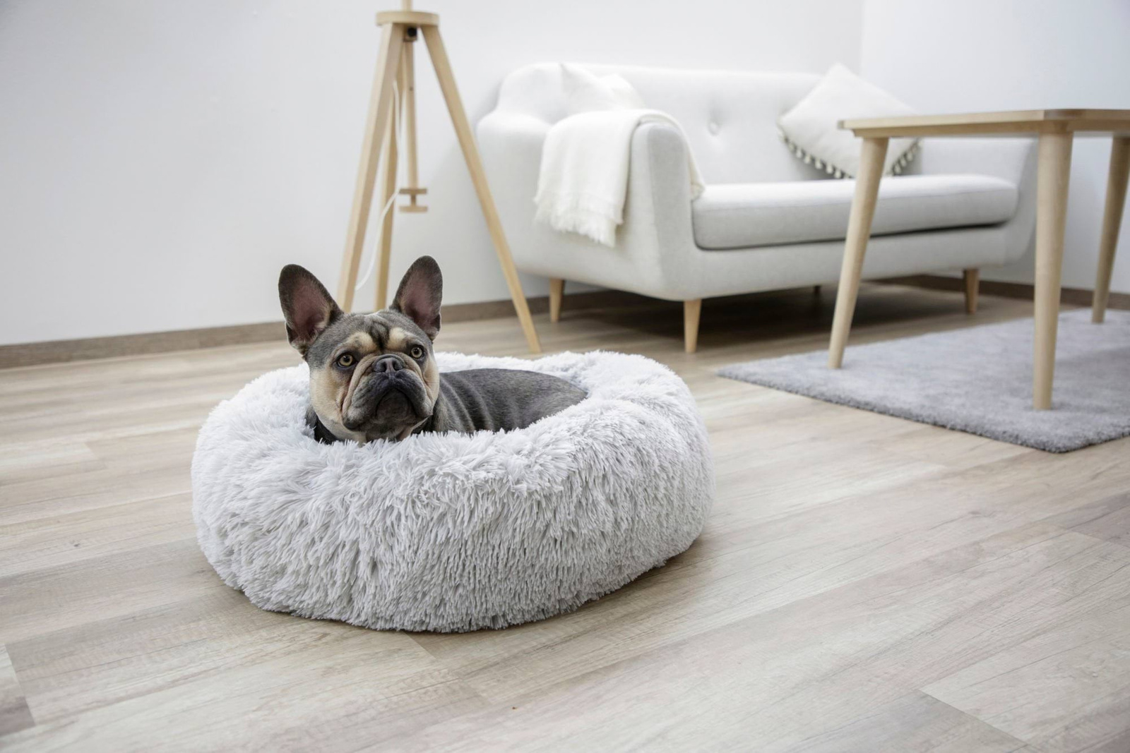 - Legowisko dla psa Fluffy – jasnoszare, Ø 60 cm, wys. 18 cm, marka Kerbl. Miękkie, puszyste i przytulne – idealne na relaks i sen małych psów. Łatwe w czyszczeniu.
