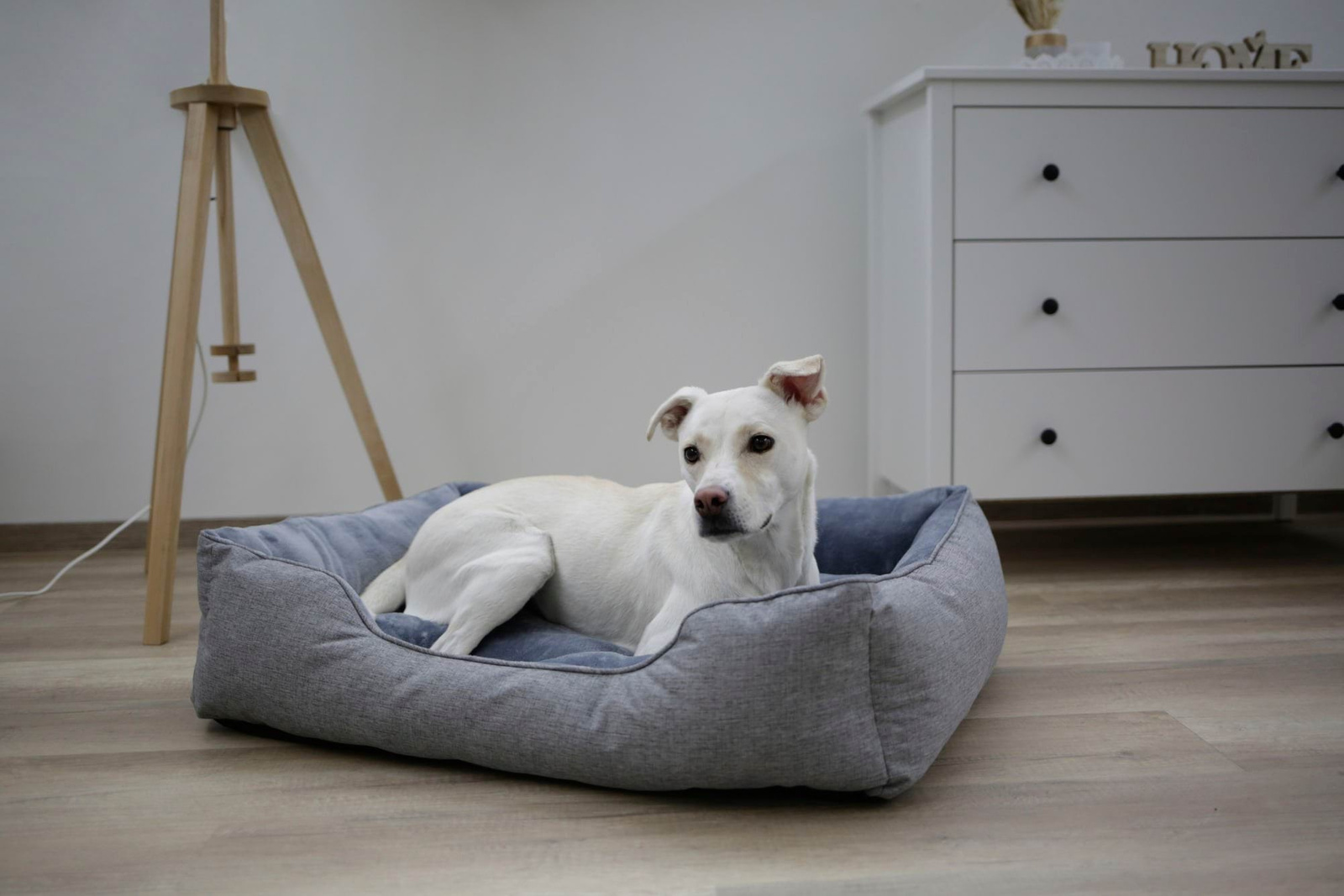- Legowisko dla psa Marie – eleganckie, szare o wymiarach 90 × 59 cm marki Kerbl. Miękka wyjmowana poduszka i wysokie boki zapewniają komfort i poczucie bezpieczeństwa.