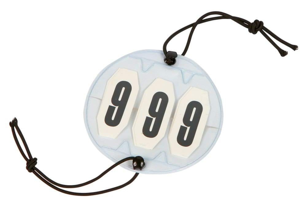 - Numer konkursowy Covalliero, 3-miejscowy, biało-czarny – lekki, trwały i łatwy do przypięcia, idealny do zawodów jeździeckich.