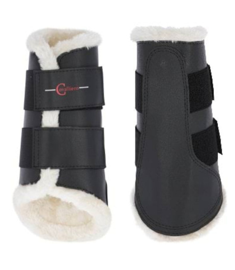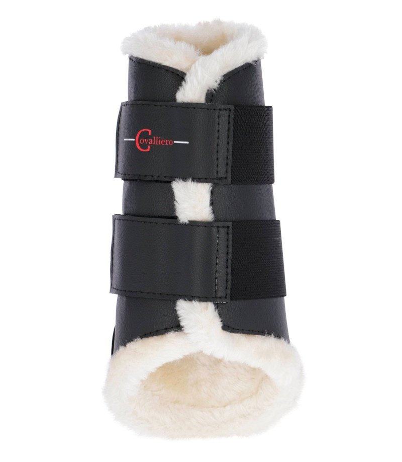 - Eleganckie ochraniacze ujeżdżeniowe na tylne nogi konia, z miękkim sztucznym futrem. Zapewniają ochronę, komfort i dobre dopasowanie. Czarny kolor, rozmiar Cob, Covalliero.