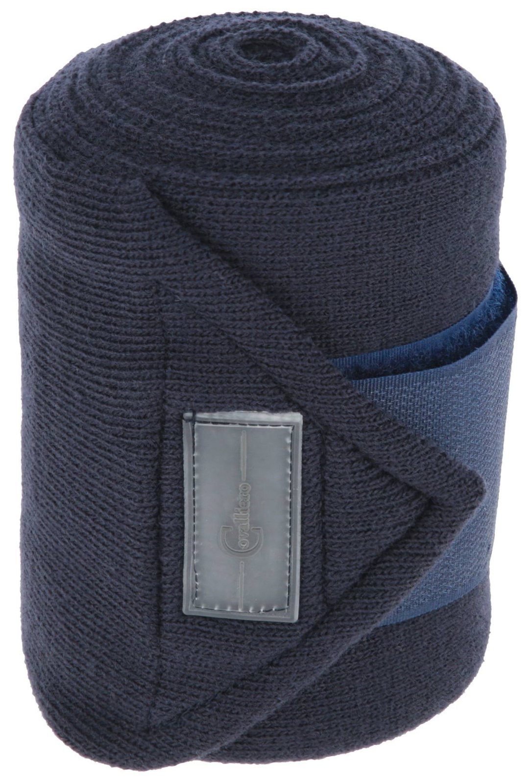 - Owijki dzianinowe dla konia, granatowe, 350 cm, 4 szt., Covalliero. Wykonane z elastycznego materiału, zapewniają wsparcie i ochronę nóg konia. Idealne do treningu i transportu. Zapinane na mocny rzep dla pewnego dopasowania.