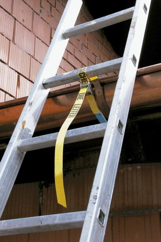 • Łatwość użytkowania – Klamra krzywkowa umożliwia szybkie i wygodne napinanie pasa, co oszczędza czas przy mocowaniu drabiny.