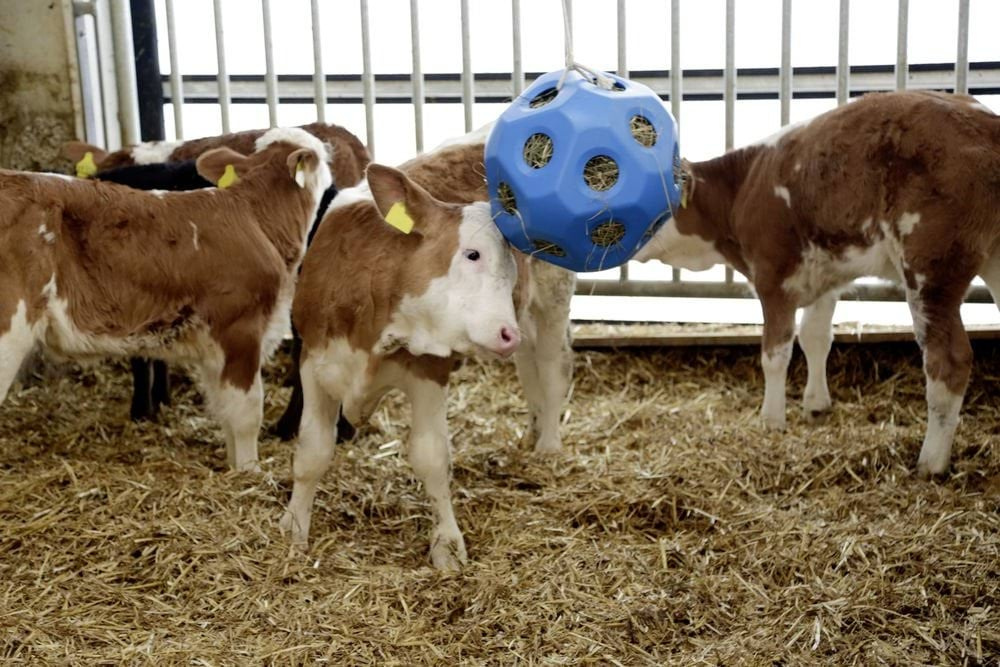 - poprzez zabawę pomaga w powolnym i właściwym dla konia przyjmowaniu siana