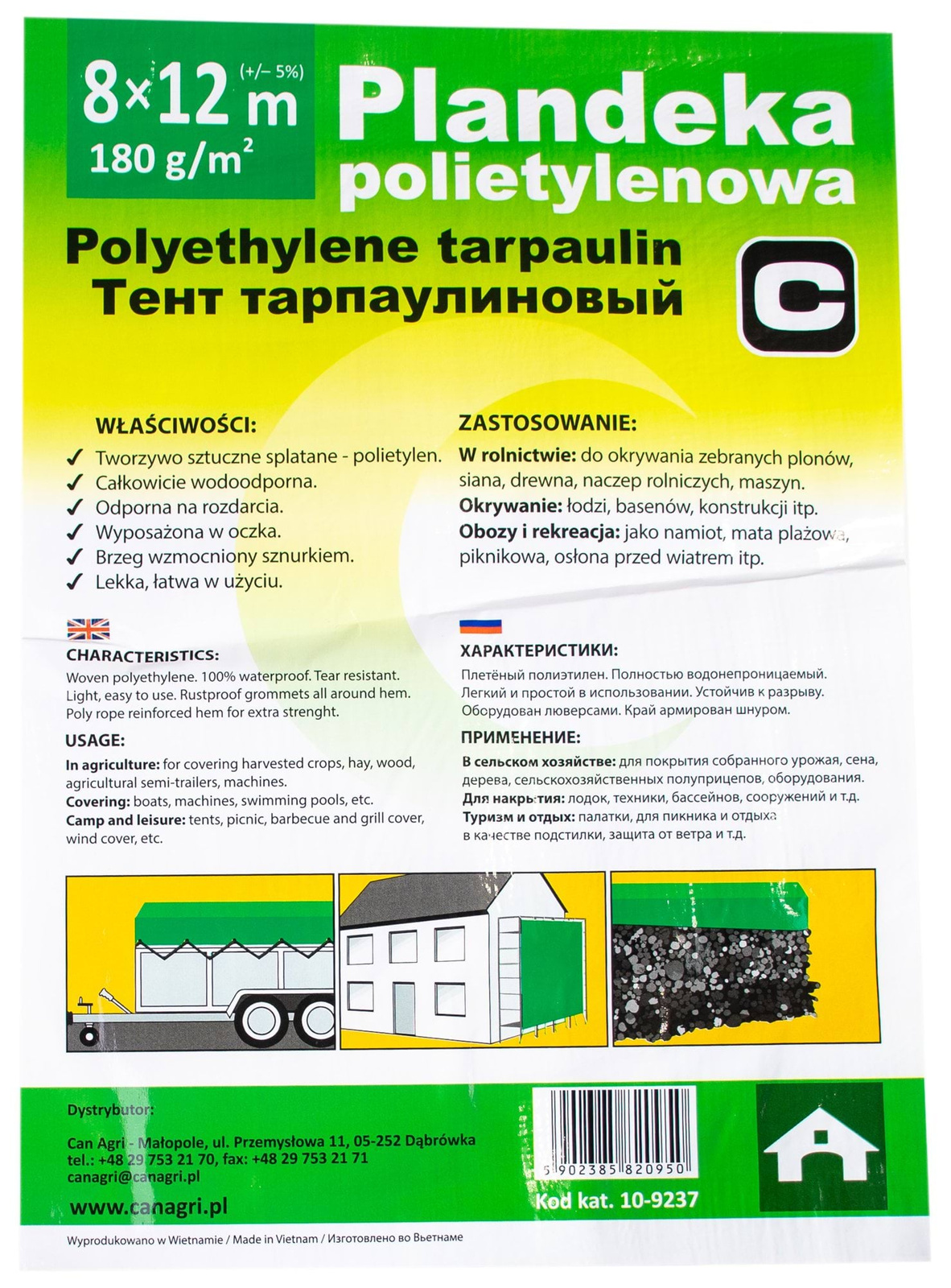 Plandeka 8x12 m, 180 g, zielona, PE, Can Agri