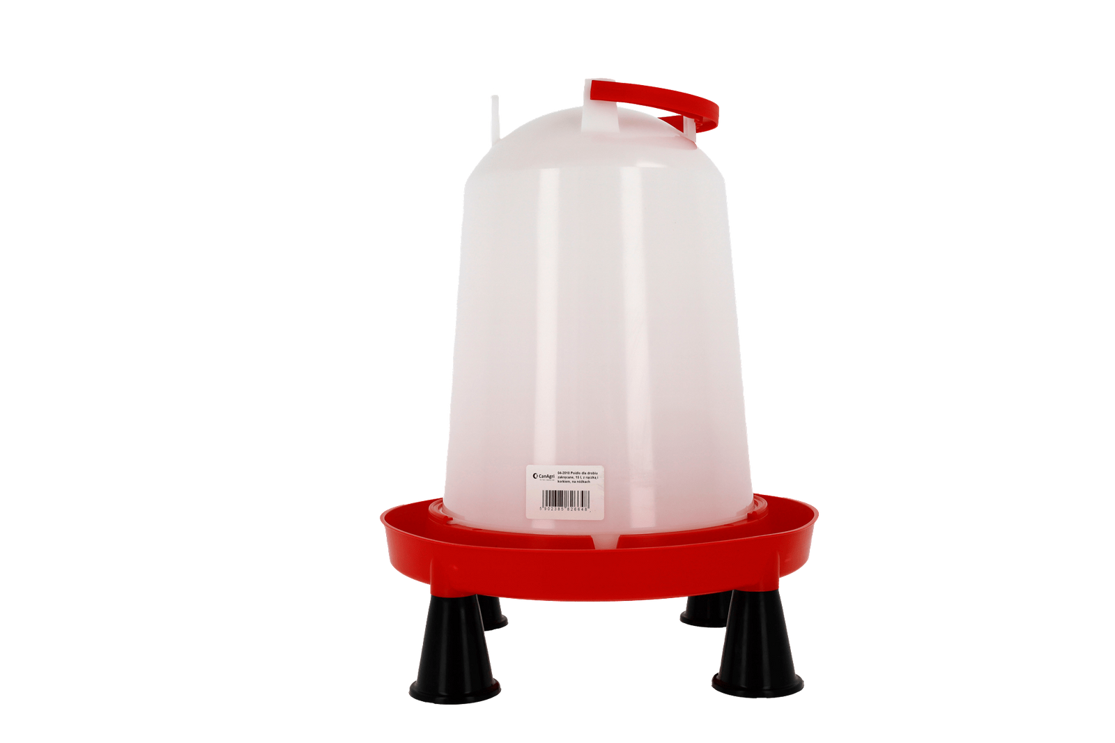 Poidło 15-litrowe zakręcane z rączką na nóżkach, idealne do hodowli drobiu oraz ptactwa ozdobnego. Poidło posiada dodatkową zakrętkę w misce, co umożliwia nalewanie wody bez konieczności odkręcania miski.