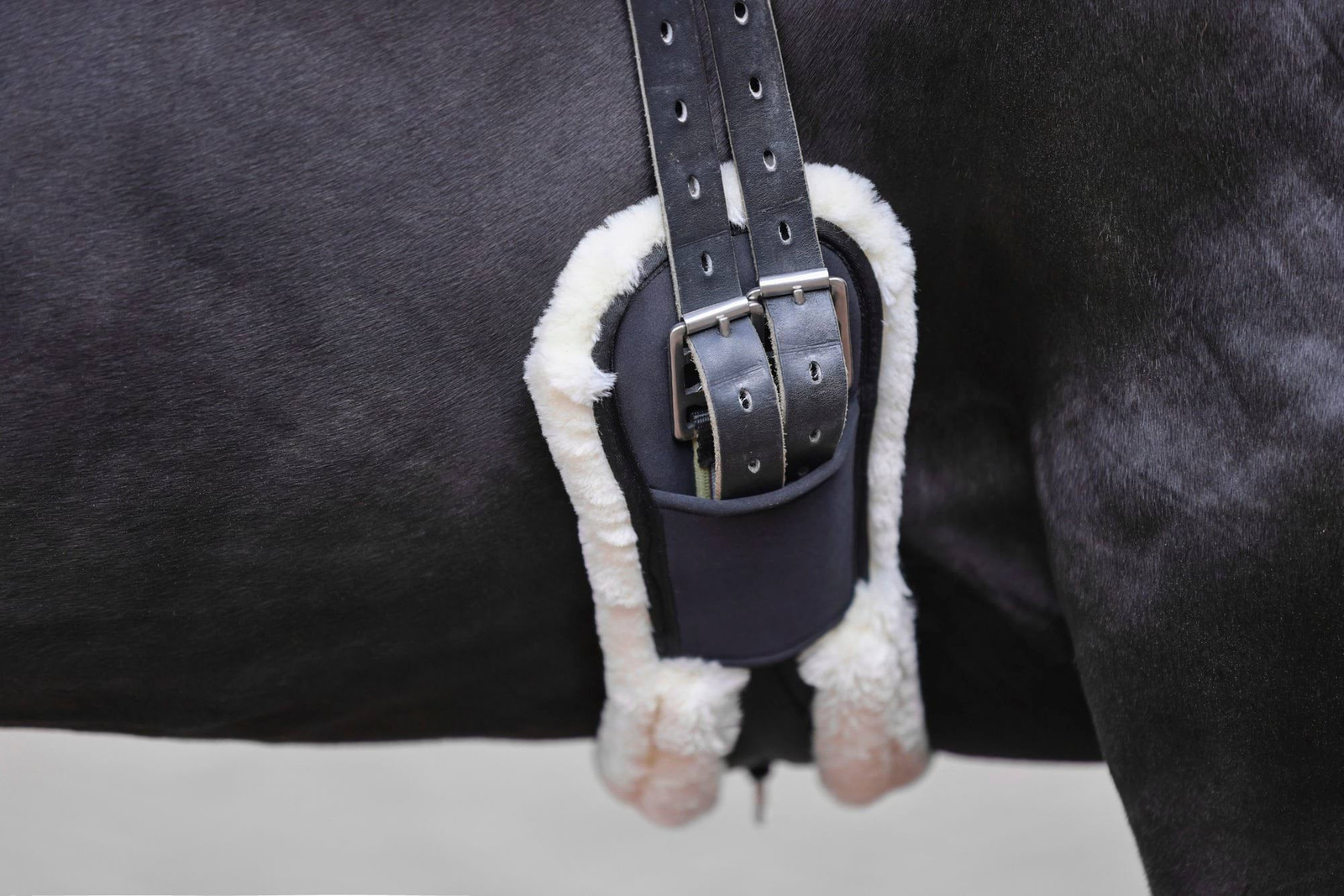 Popręg ujeżdżeniowy, różne rozmiary - od 50 cm do 85 cm, ze sztucznym futrem, czarny, Covalliero