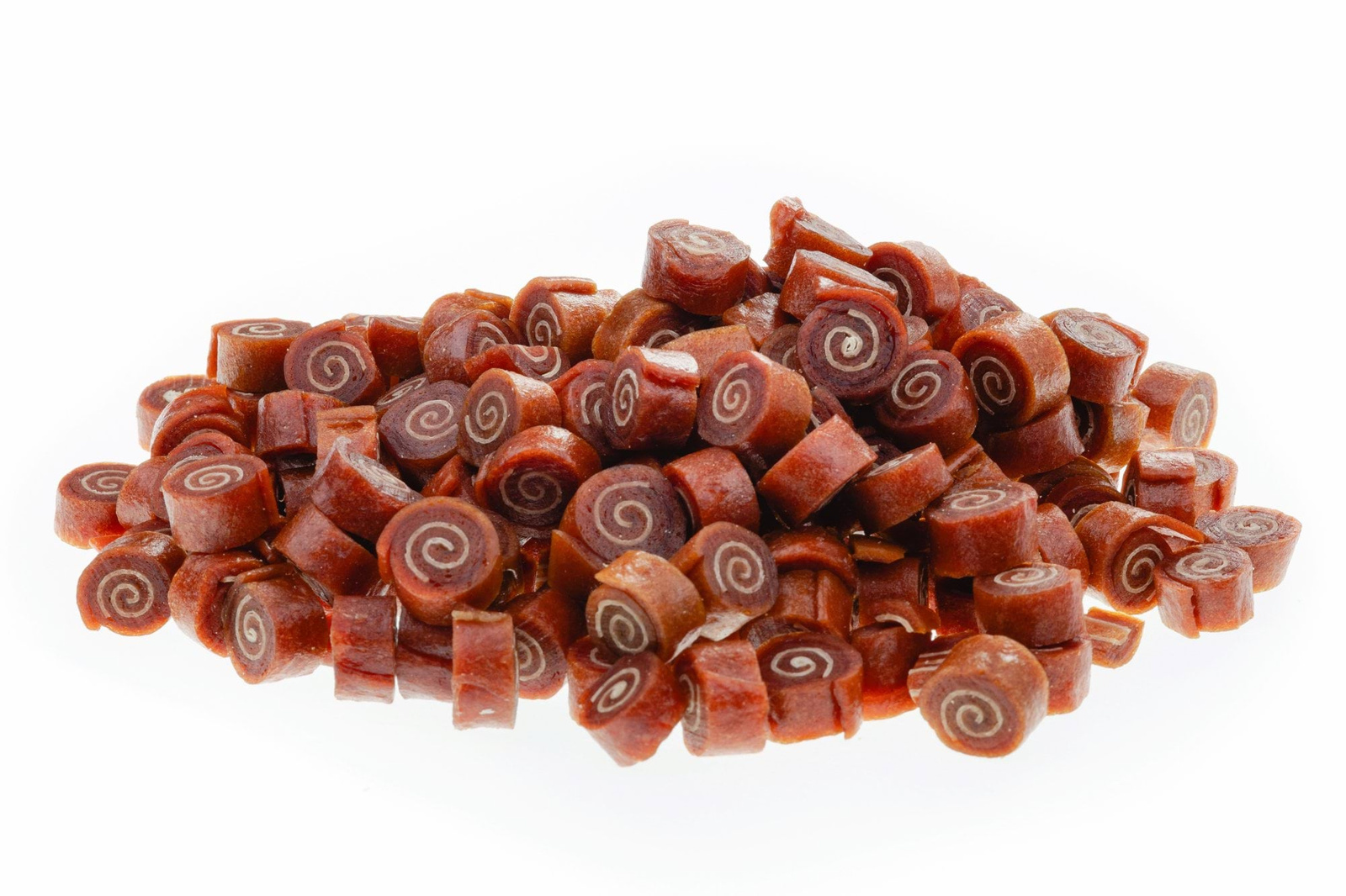 - Smaczne mini-krążki rollsy z kaczką Canagri, 500 g. Idealne jako nagroda lub przekąska, bogate w białko, wspierają żucie i codzienną radość psa.