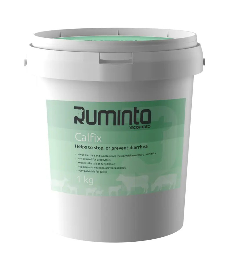 - Ruminta Ecofeed Calfix to preparat na biegunkę dla cieląt, dostępny w opakowaniu 1 kg. Szybko łagodzi objawy biegunki, wspiera nawodnienie i poprawia funkcjonowanie układu pokarmowego, sprzyjając zdrowemu rozwojowi cieląt.