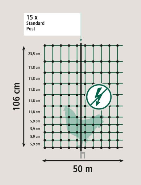 - Siatka nieelektryczna dla drobiu Kerbl, zielona, 50 m, wysokość 106 cm, z podwójnym szpicem. Mocna i stabilna, idealna do bezpiecznego ogrodzenia drobiu i małych zwierząt.
