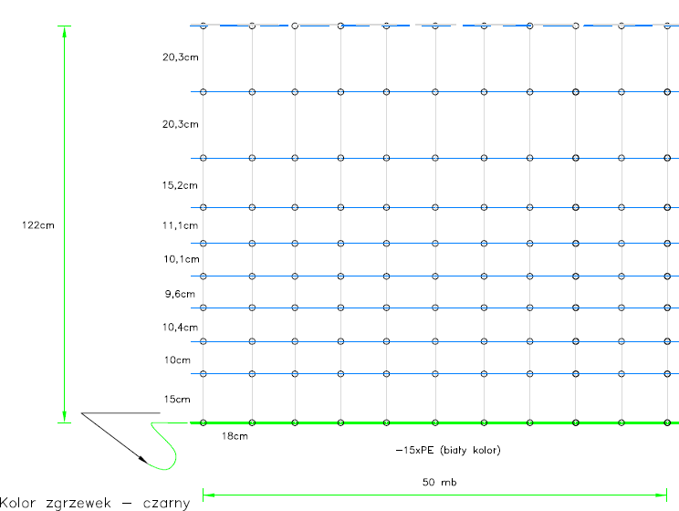 - Siatka Kerbl OviNet Maxi, 50 m × 122 cm, podwójny szpic, biało-niebieska. Skuteczna ochrona przed wilkami, wytrzymała i łatwa w montażu, idealna do zabezpieczania pastwisk.