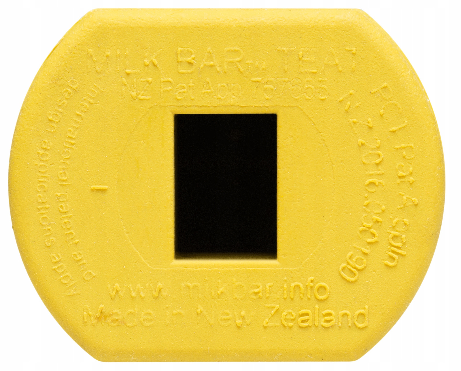 - Bardziej miękka mieszanka gumy jest specyficzna dla treningu, ale przepływ jest nieco szybszy niż w przypadku smoczka Milk Bar™. Zmiana na bardziej kontrolowany przepływ smoczka Milk Bar™ zabezpiecza cielęta przed szkodliwymi skutkami szybkiego karmienia.
