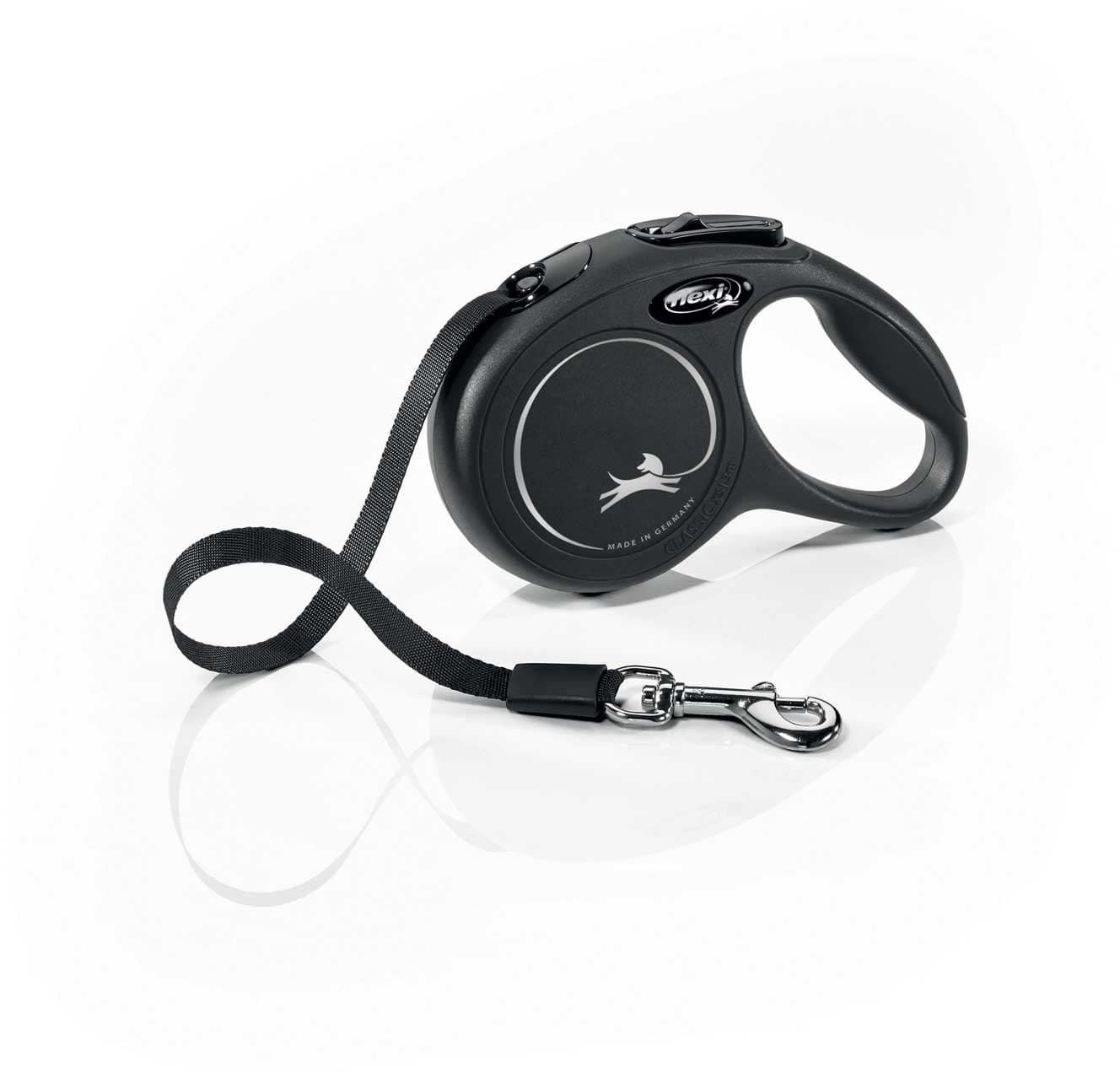- Smycz Flexi New Classic XS – czarna taśma 3 m, nośność do 12 kg. Lekka i wygodna, zapewnia małemu psu bezpieczeństwo i swobodę ruchu podczas spacerów.