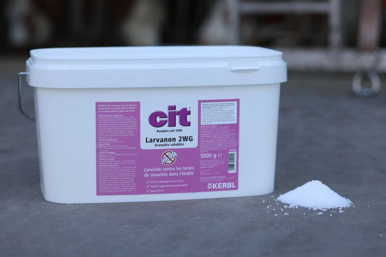 - Środek owadobójczy na larwy much Larvanon 2 WG o pojemności 5000 g marki Cit to skuteczny preparat do zwalczania szkodników. Formuła w postaci granulatu zapewnia długotrwałe działanie, eliminując larwy much i zapobiegając ich rozwojowi.