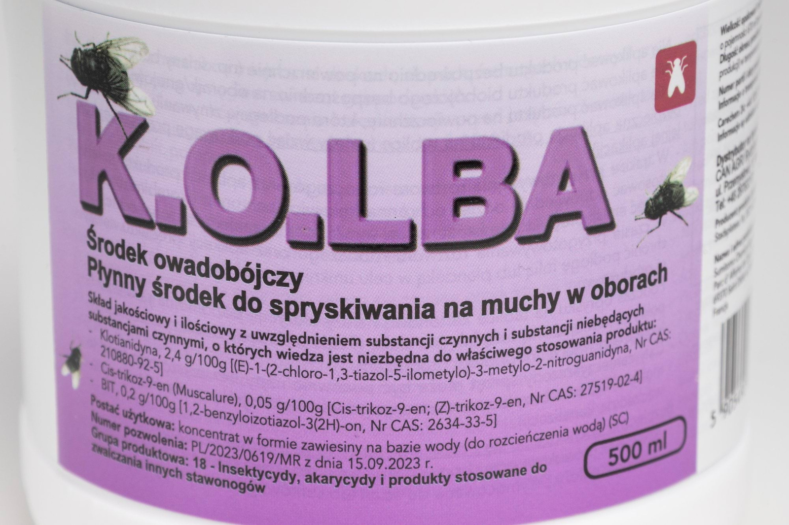 - Środek owadobójczy na muchy KOLBA w pojemności 500 ml, skutecznie eliminuje muchy w różnych pomieszczeniach.