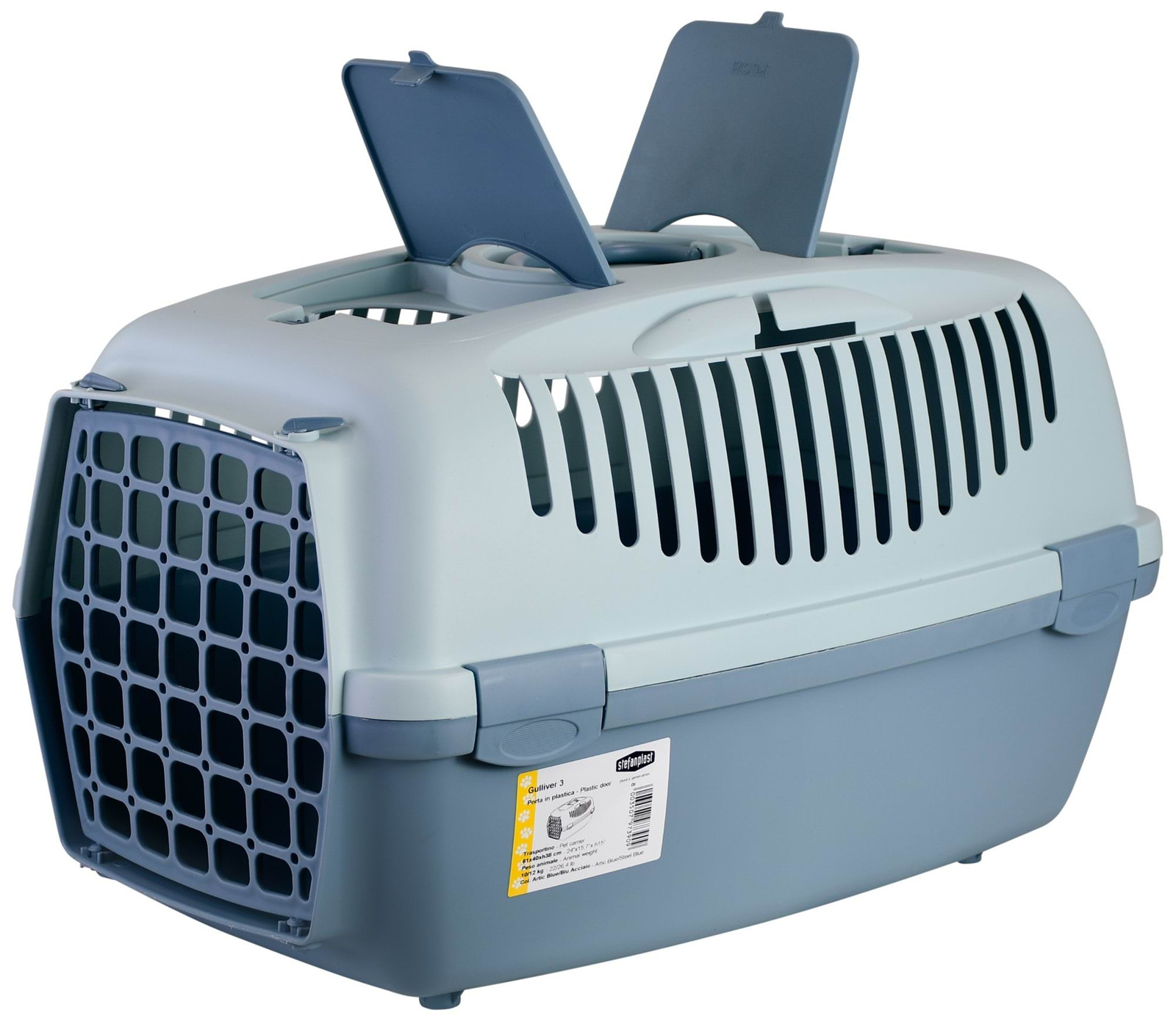 Transporter Gulliver 3 z plastikowymi drzwiczkami, 61 x 40 x 38 cm, niebieski/szary, 12 kg, Stefanpl