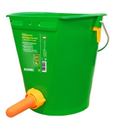 - Wiadro do pojenia cieląt Kerbl, 8 l, zielone, z higienicznym zaworem i smoczkiem lateksowym – wygodne, trwałe i łatwe w użyciu.