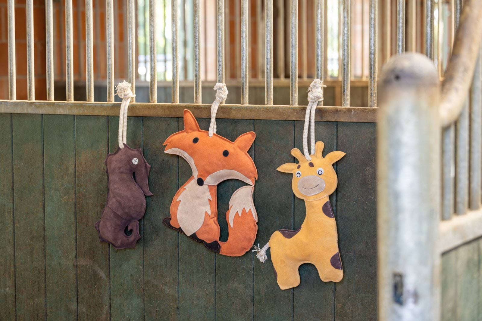 - Zabawka dla konia w kształcie lisa, 40 cm, marki Kerbl. Wykonana z trwałego materiału, zapewnia koniowi zabawę i stymulację, pomagając w redukcji stresu i nudów.