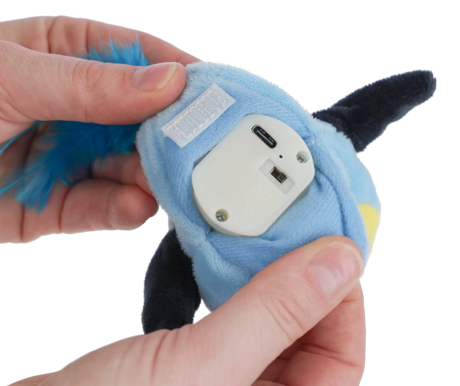 Skaczący ptak Kerbl 17×12,5 cm w kolorach niebieskim, żółtym lub czarnym. Sprężysty i lekki – podskakuje przy dotyku, pobudzając instynkt łowiecki kota!
